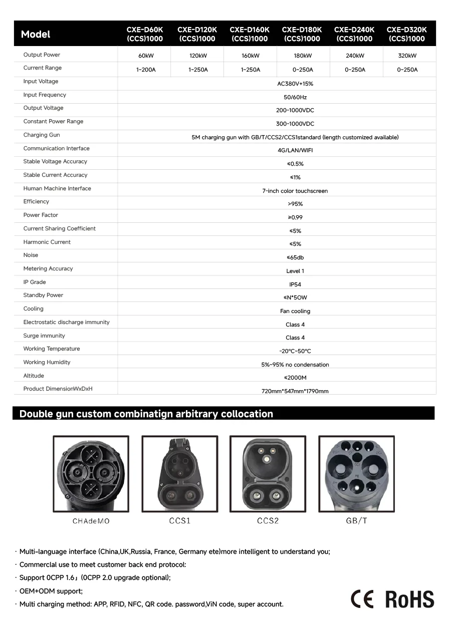 Low standby power consumption ( <10W) reduces operating costs; wide output voltage range of 150V–1000V is applicable to most vehicles; high power density with a compact size and small volume saves space and transportation costs; expertise in air duct technology ensures heat dissipation efficiency, thus insuring product reliability; full safety protection makes the product safe; a flexible and friendly UI interface allows customization of the UI interface style according to customer needs.