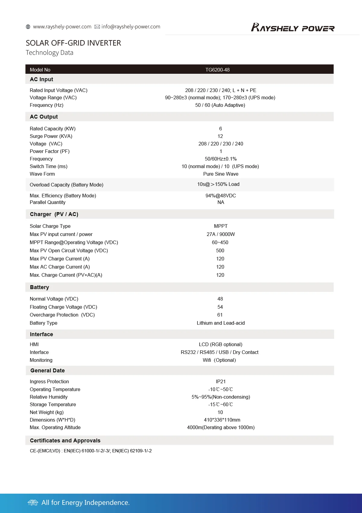 Off-grid inverter(6200w)TG6200-48