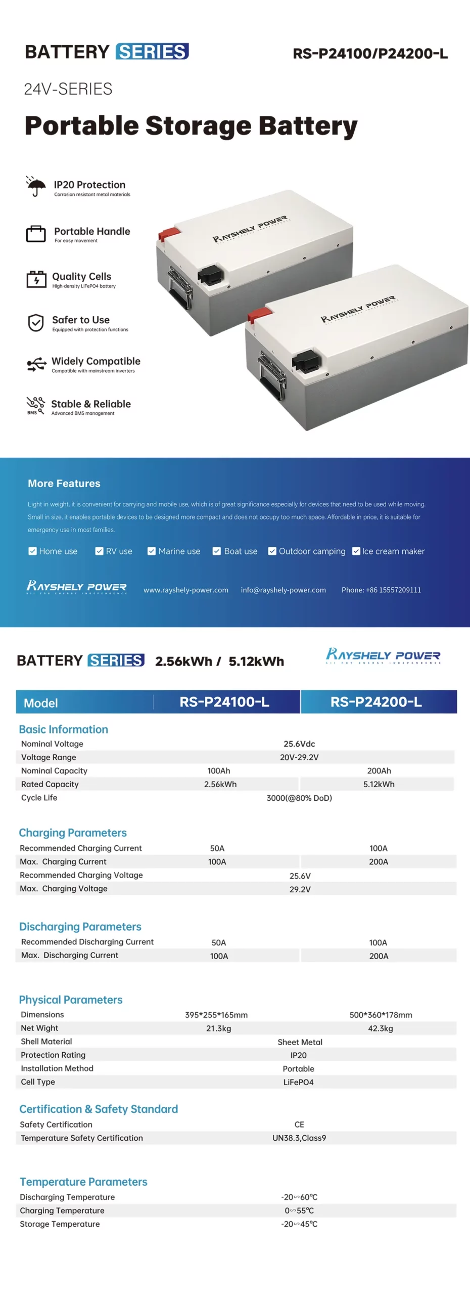 24V Portable Storage Battery 2.56kWh 5.12kWh (RS-P24100-L,RS-P24200-L)